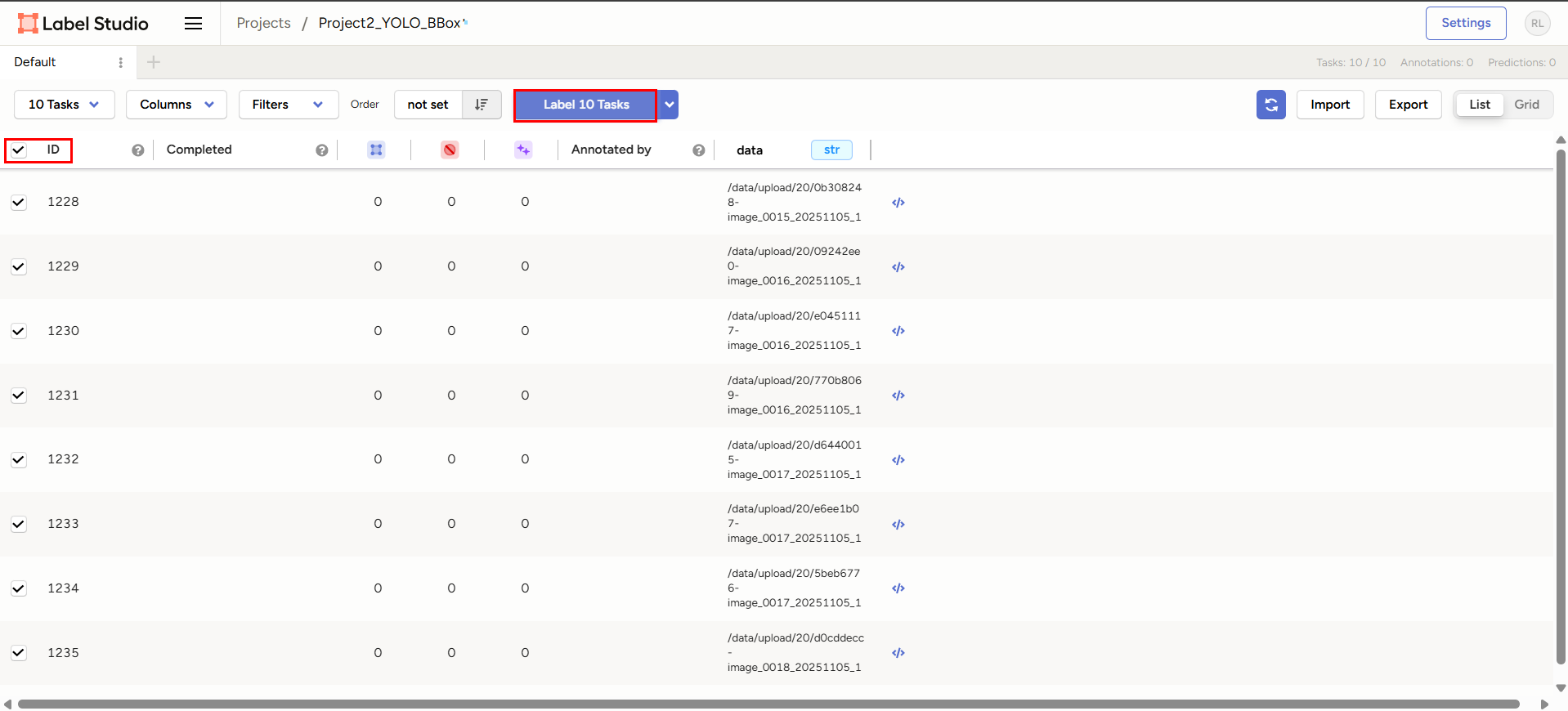 5. ID 모든 목록 체크 후, Label N Tasks 선택