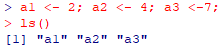 | "a1 <- 1" | a1이라는 이름의 변수에 값 "1"을 대입 | ![]() |