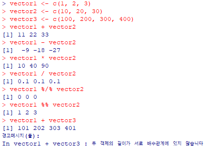 vector1의 index: 1인 "1" * vector2의 index: 1인 "10" = 50 + α) R에서 시작 Index는 1이다. |